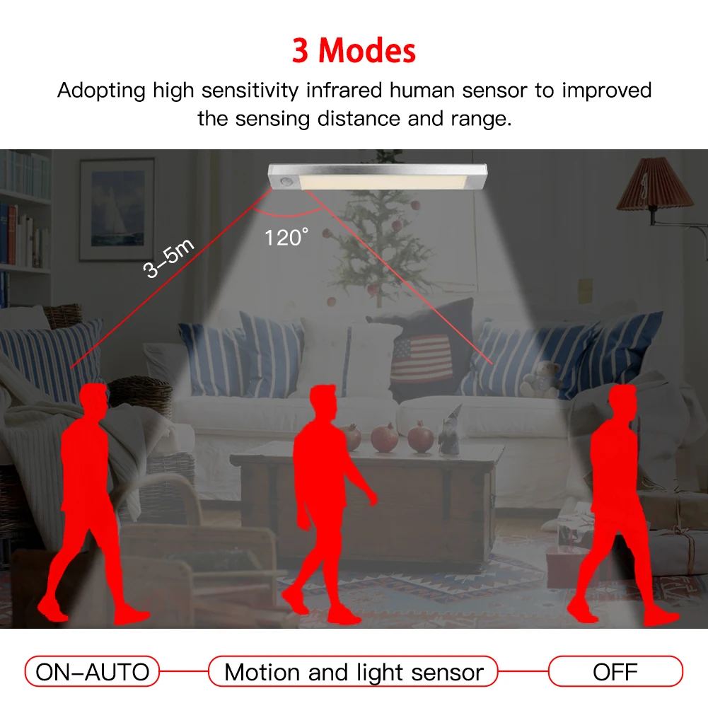 *2.Multi Choose Switch: Under Cabinet Lighting has always light mode, motion sensing mode, 3 adjustable color modes; one-key easy switching; wireless nights lightbar according to your need, give your family the best protection in the dark!