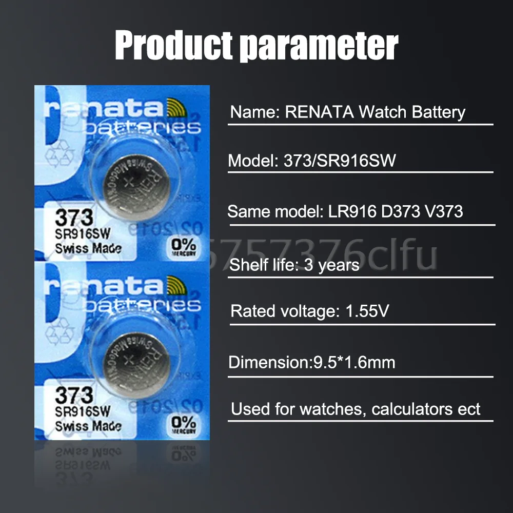 2 шт. оригинальные часы Renata 373 SR916SW 916 LR916 SR68 1,55 V с оксидом серебра, пульт дистанционного управления, швейцарская кнопка для монет