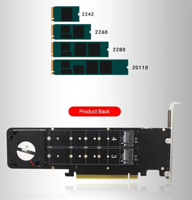 Передняя и задняя стороны могут быть расширены четырьмя слотами одновременно, что совместимо со спецификациями 2242/2260/2280/22110, поддерживает M.2 M-KEY NVME SSD и Aoteng, И поддерживает карты расширения M.2 PCle и устройства.