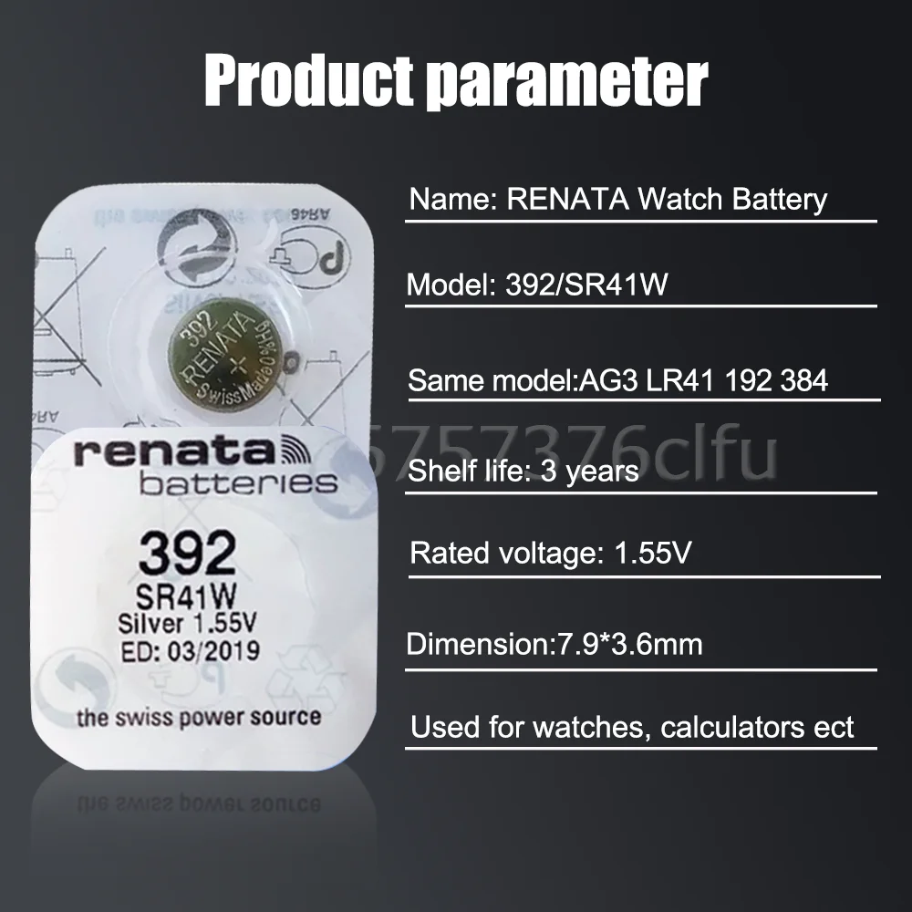 5 шт. Renata 392 SR41W AG3 LR41 SR41 192 L736 384 CX41 1,55 V оксид серебра часы батареи калькуляторы игрушки швейцарские кнопки