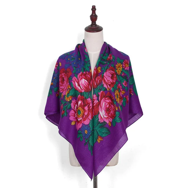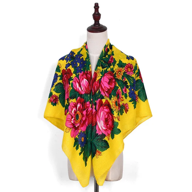 Название стиля:110*110 см русский женский шарф с цветочным принтом, квадратные шарфы, Женский носовой платок, хиджаб, бандана, Этническая шаль, Золотая пряжа