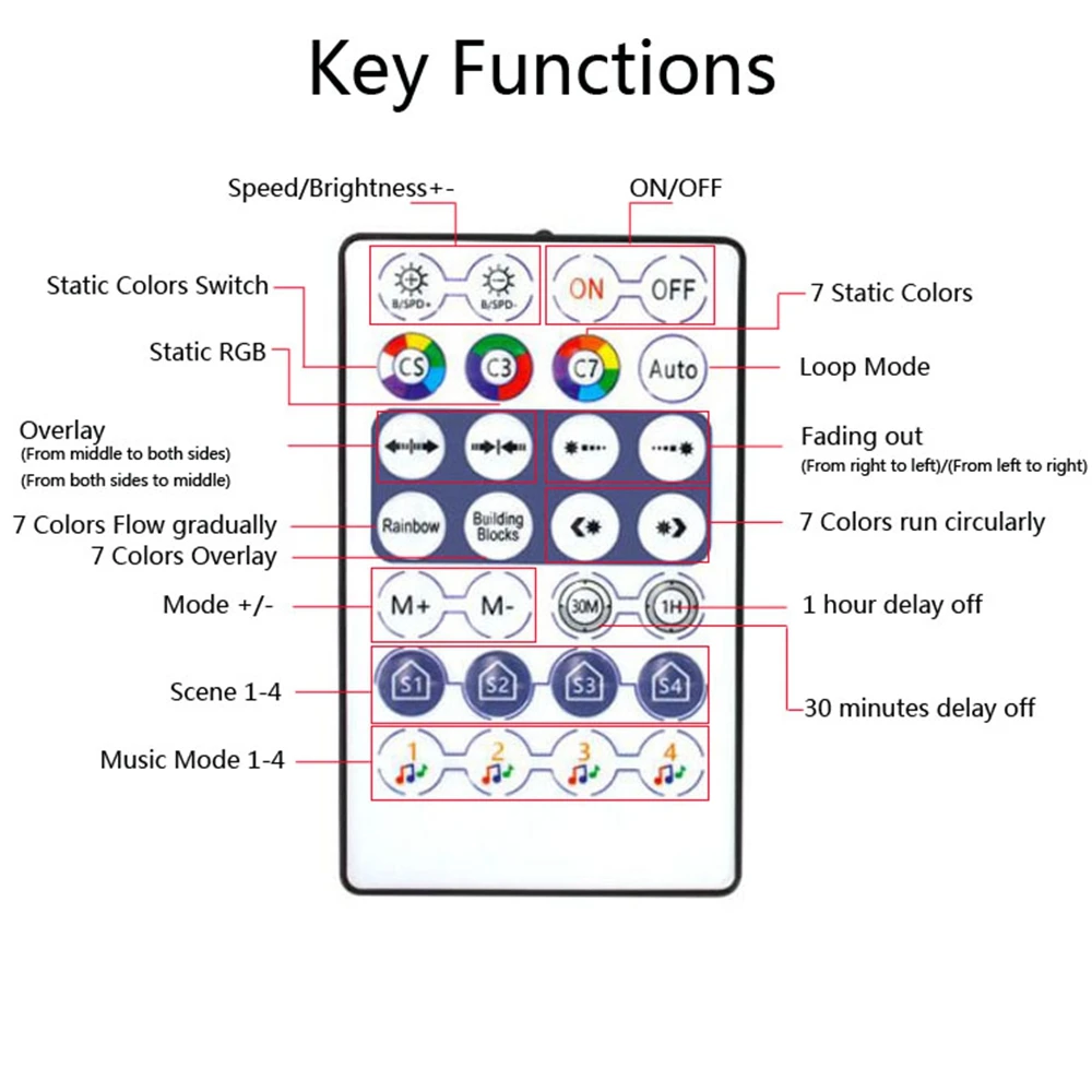 1. Мобильный телефон может использовать приложение для управления и регулировки цвета и яркости полосы светильник через smart bluetooth