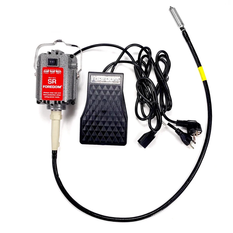 Foredom 1/6 HP, универсальный, гибкий вал машина работает вперед и назад вращения на скорости до 18000 об/мин. M.SR сочетает в себе самые важные особенности наших клиентов-мощность, обратимость, надежность и универсальность-все в одном двигателе. Он поставляется с мотором тюка для подвешивания, и наш стандартный 39 "длинный ключ-наконечник внутренний вал и внешняя оболочка для подключения к любой из Foredom 20 + взаимозаменяемые, быстро отсоединить наконечники.Детали мотора:1/6 hp, шарикоподшипник серии SR имеет 33% больше энергии, чем у старых 1/8 лошадиных сил двигатели и 66% больше, чем у оригинального 1/10 hp модели. Дополнительная мощность помогает уменьшить задержку или замедление при нормальных рабочих нагрузках.Преимущества работы в обратном направлении:Левшей пользователи имеют больше контроля режущего инструментаОбратный помогает удерживать пыль и другие мусор от правшейПеременное направление двигателя помогает продлить срок службы некоторых абразивовРеверс помогает выполнять симметричные технологии шлифования и резьбыРеверс делает его более легким для задней части застревают сверлаПеременное направление двигателя облегчает и ускоряет полировку металлов.