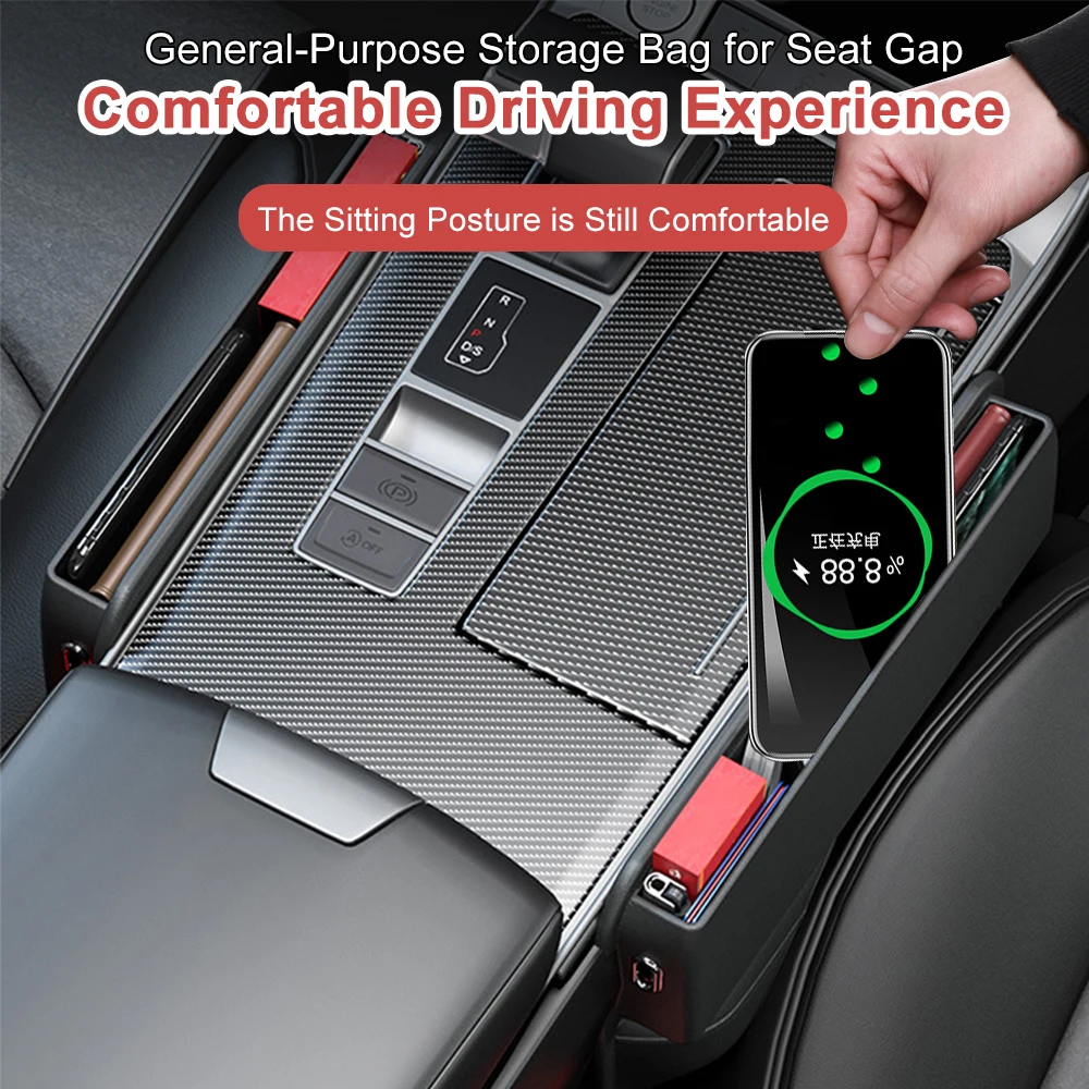 Чехол-сумка для автомобильных сидений, сумка для хранения из искусственной кожи, автомобильная консоль, наполнитель для боковых сидений, органайзер для переднего сиденья, запасное отверстие для кабеля для зарядки