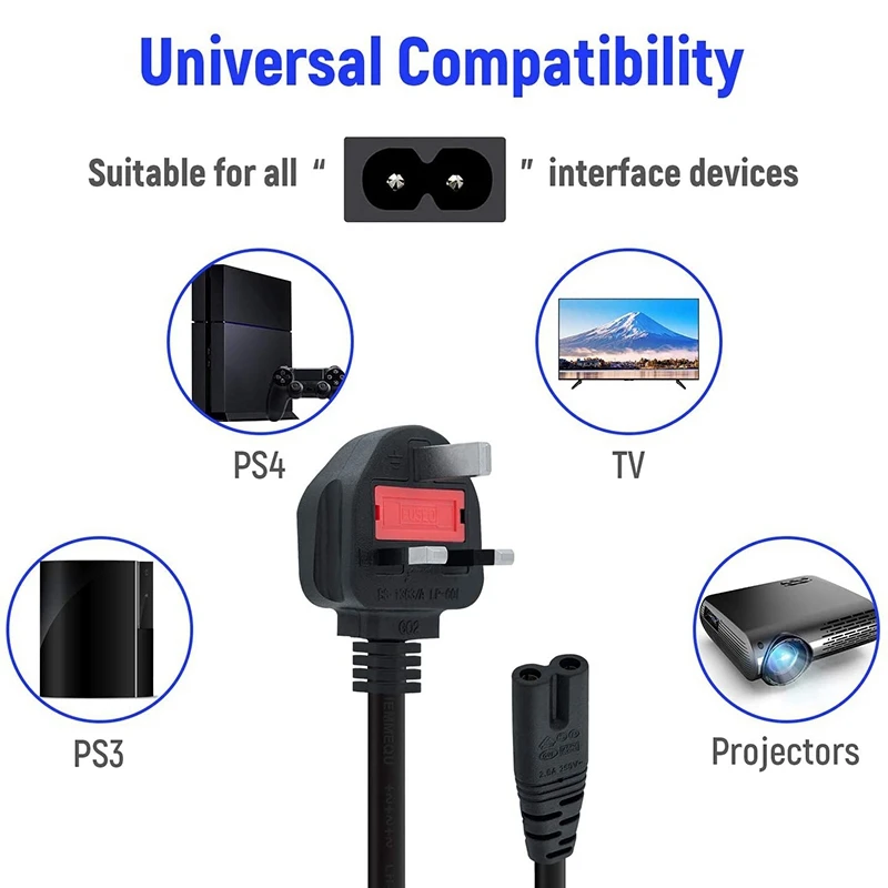 3. Также совместим с светодиодный TV s, DVD портативными музыкальными CD-проигрывателями, TV box, Sky Box и другими устройствами, требующими 2 зубец Шнур переменного тока.