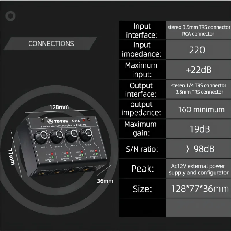 TEYUN 4-канальный профессиональный усилитель для наушников PH4 Портативный смеситель с одной-восьми Выход MP3 стерео однотонные переключатель по своему желанию