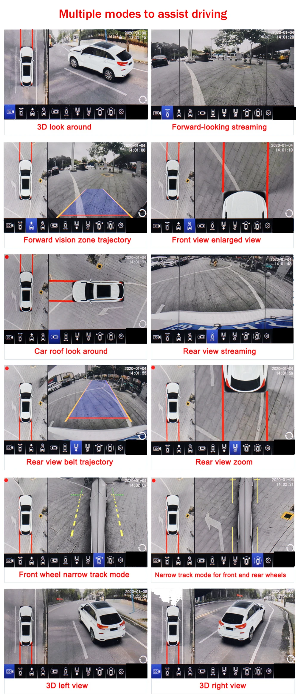 2. Вы можете выбрать другой угол для просмотра окружающей среды вашего автомобиля, и он автоматически переключает вид, когда вы поворачиваетесь и поворачиваетесь назад.