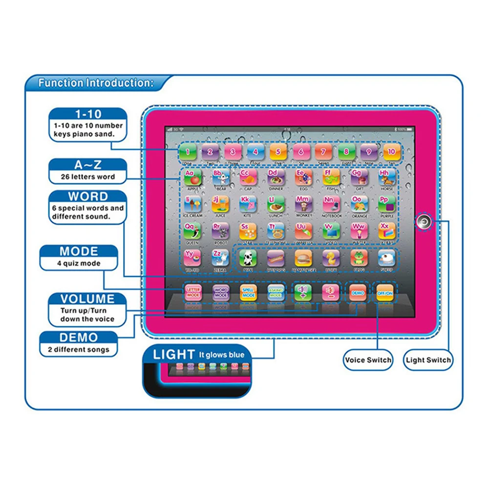 Английский Обучающий планшет с сенсорным экраном, музыкальный светильник, имитирующий ноутбук, для малышей, детей, Ранняя развивающая игрушка, подарок для детей