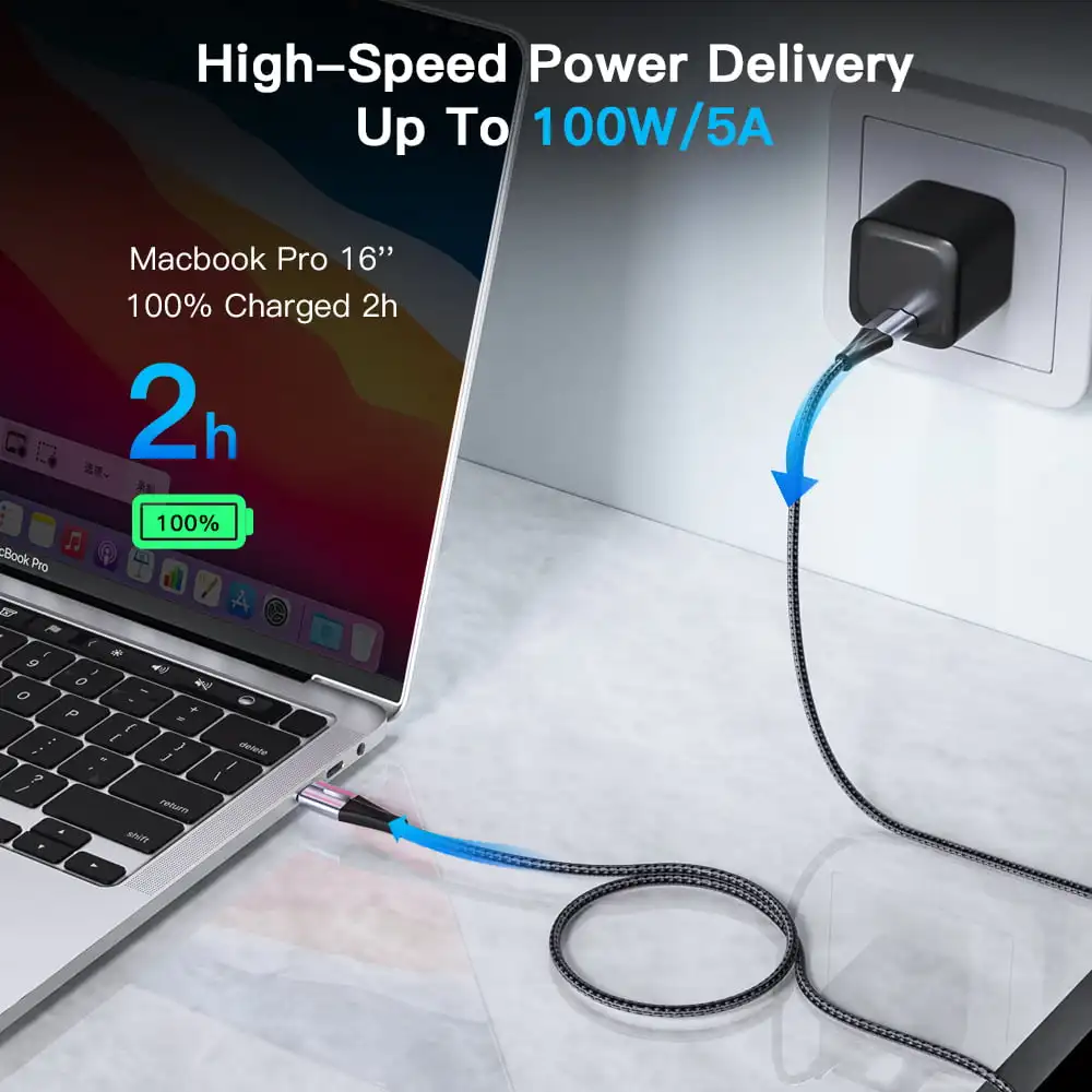 Кабель ELECTOP 100 Вт USB C к Type C PD 5A для быстрой зарядки, шнур для зарядки телефона со светодиодным кабелем для передачи данных для Samsung Huawei Xiaomi