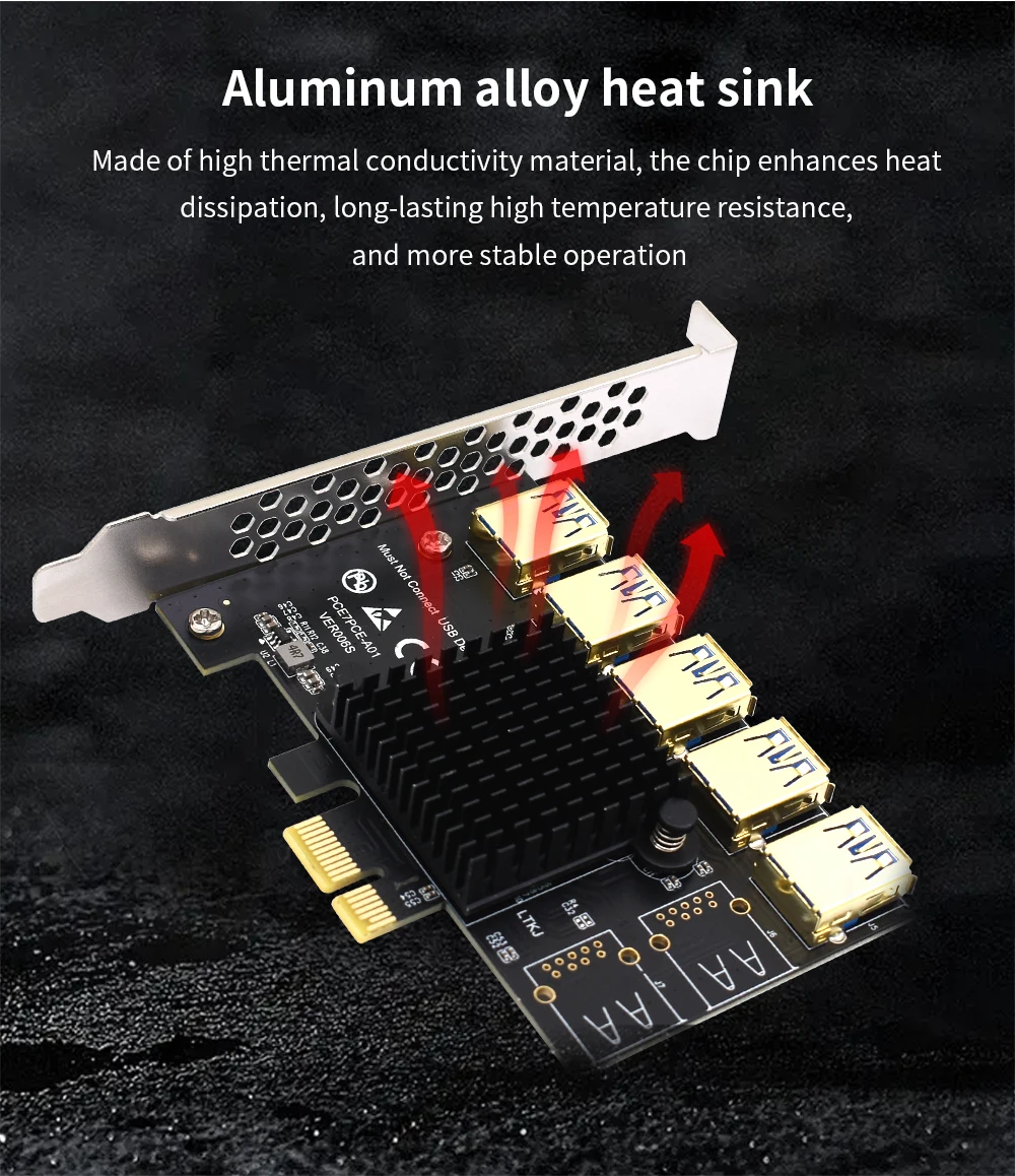 TISHRIC Pci Express мультипликатор Pcie 1x к 4/5/6 USB 3,0 карта расширения Pcie 1 к 4 Hub Riser 009s Pci Express x16 для BTC Mining