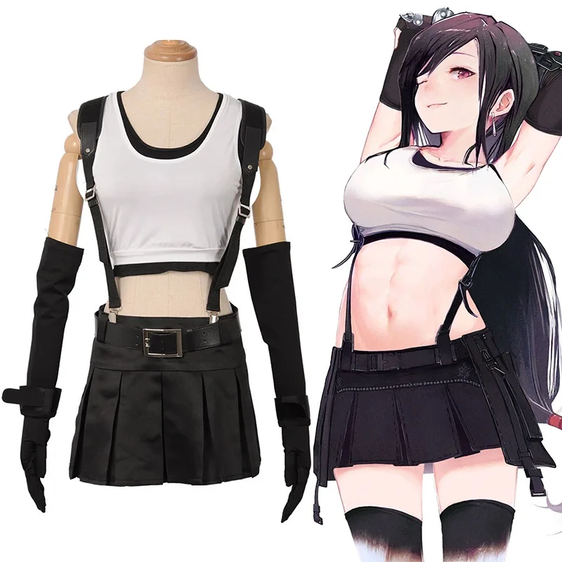 Костюмы FF VII тифа Локхарт Косплей Униформа Костюмы FF7 римейк игра костюм сексуальный костюм тифа косплей парик черный головной убор