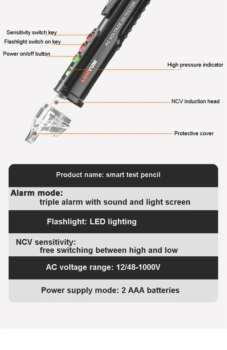 FY18C Бесконтактный 12-1000 в детектор напряжения индикатор тестовый er Ручка тест напряжения переменного тока умный датчик точки останова Finder Электрический инструмент