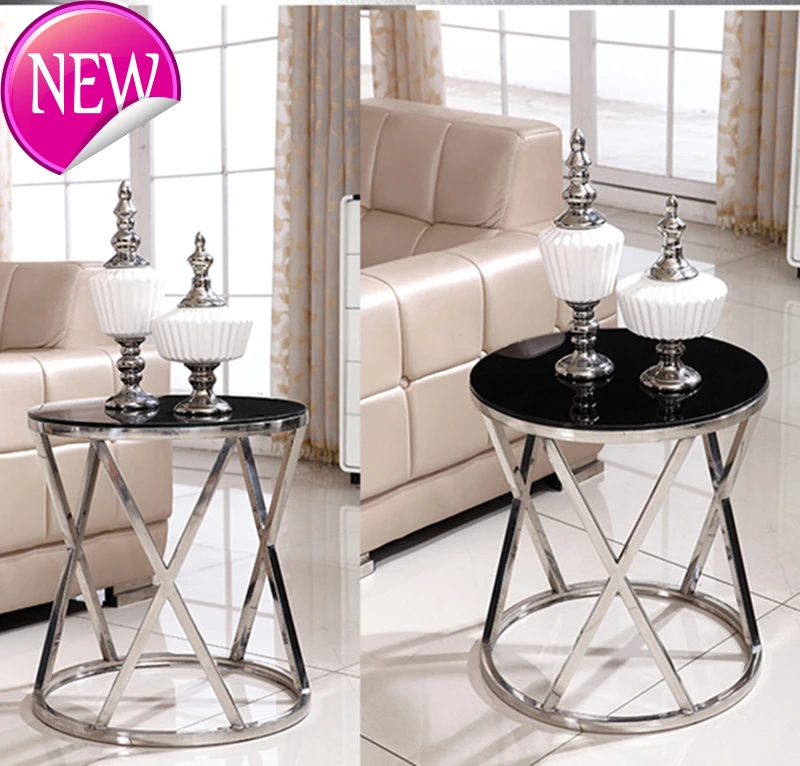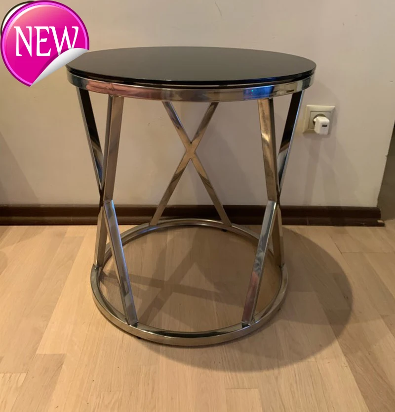 50x50 см маленький круглый журнальный столик с черным закаленным стеклом столешница серебро Нержавеющая сталь ножки мебель для гостиной