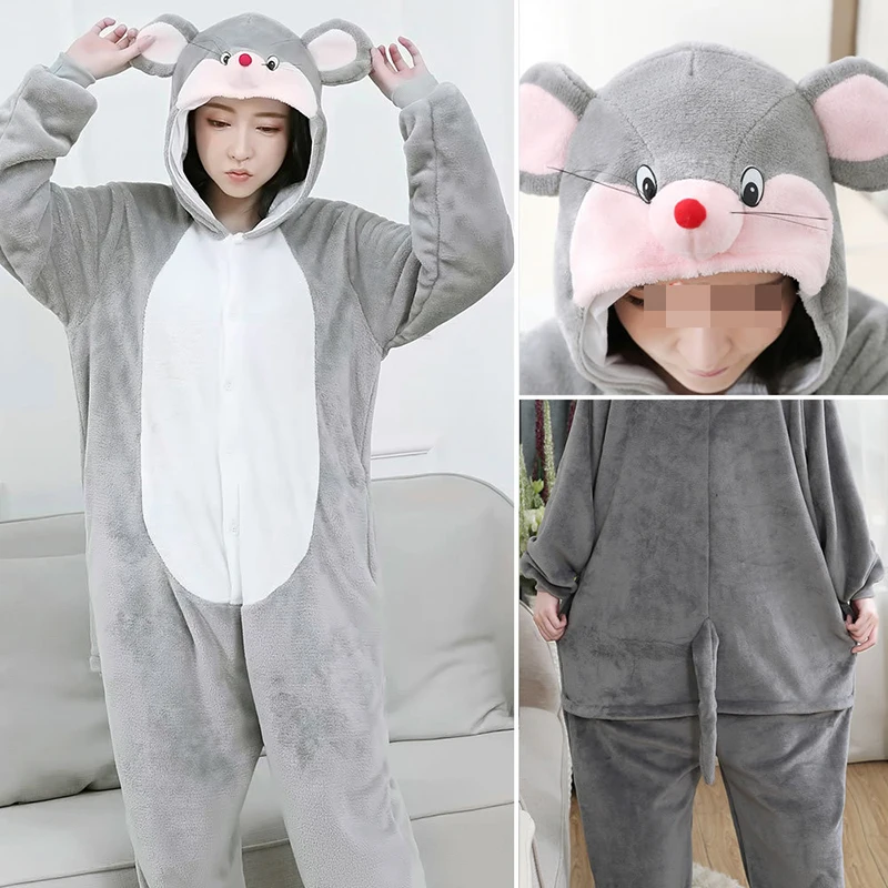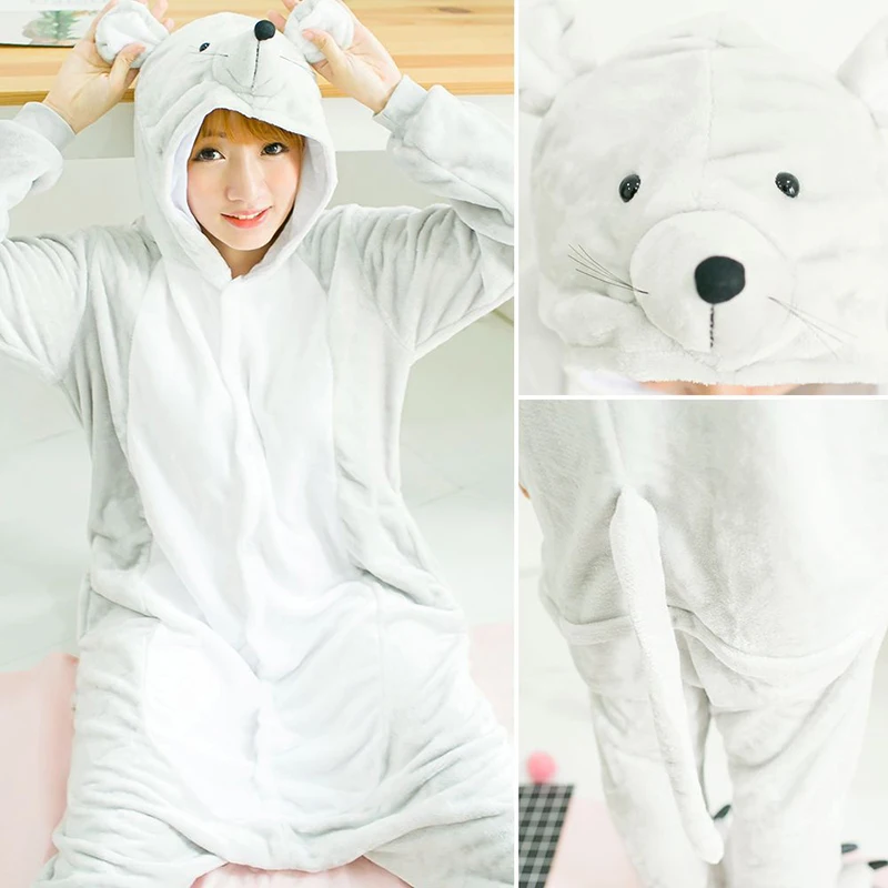 Кошка кролик унисекс Пижама комбинезон для взрослых мышь фланелевая Косплей Животное цельная Пижама комбинезон для Хэллоуина Костюм для женщин и мужчин