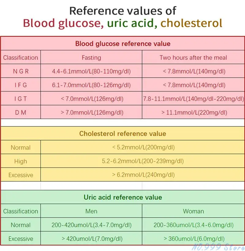 3. Cholesterol range: 2.4mmol/L ~ 11.5mmol/L (100mg/dL ~ 400mg/dL)