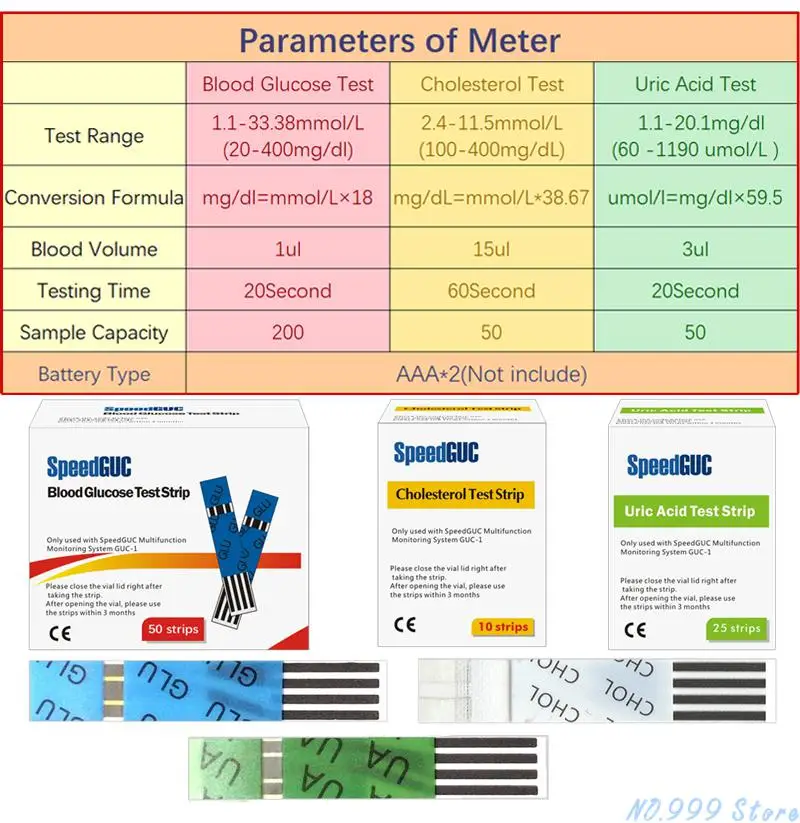 3 in1 Multi-Function Cholesterol&Uric acid&blood glucose meter Monitoring system Diabetes Gout Device with Test Strips & Lancets