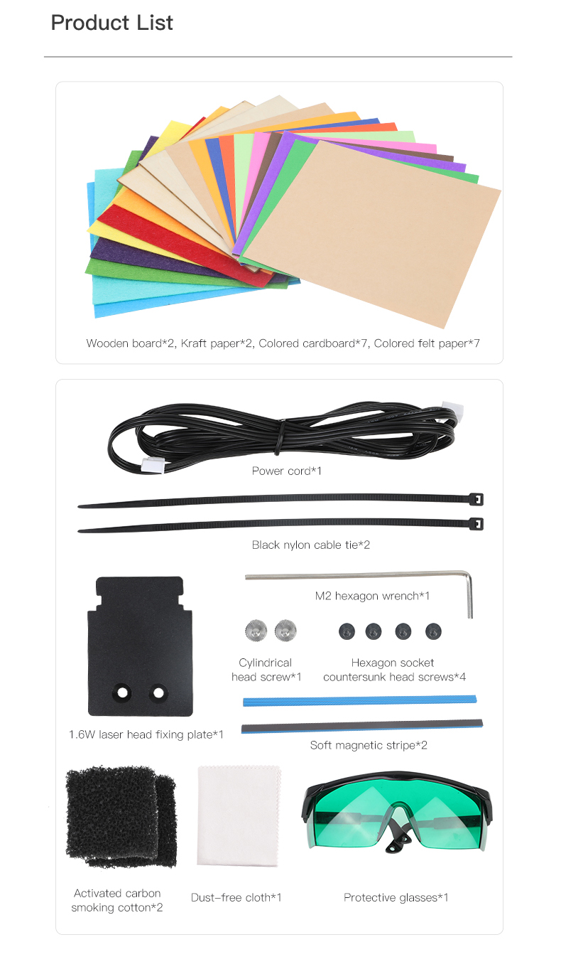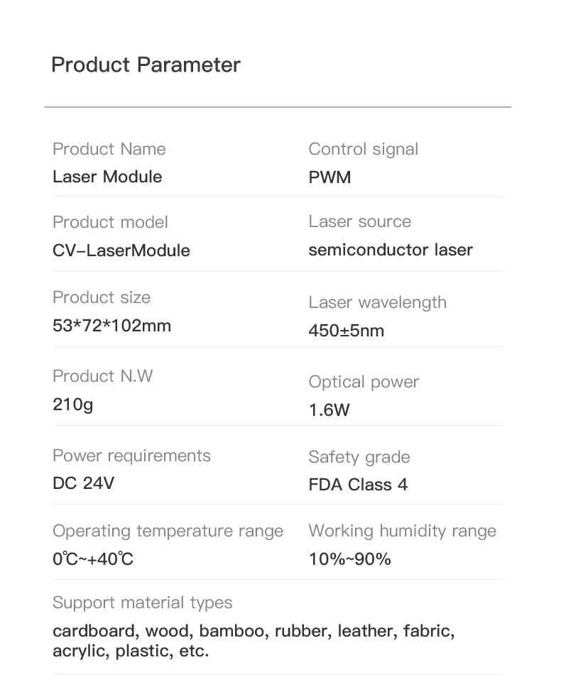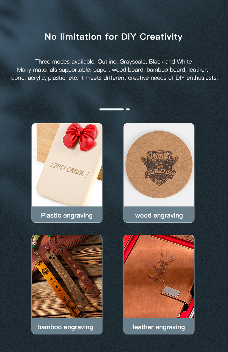 Доступны три режима: контур, оттенки серого, черный и белый. Множество материалов, поддерживаемых: бумага, деревянная доска, Бамбуковая доска, кожа, ткань, акрил, пластик и т. д. он отвечает различным творческим потребностям любителей DIY.