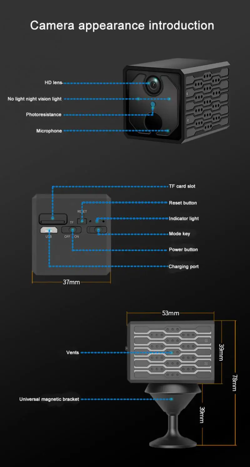 Wide-angle HD 720P / 2600mAh large-capacity battery / 10 hours of continuous recording