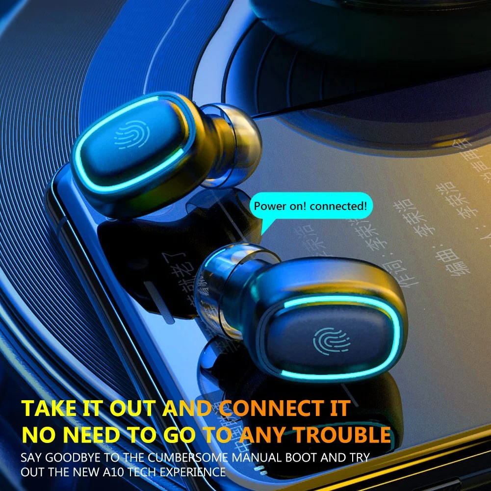 2021 Новая беспроводная bluetooth-гарнитура A10 Hifi в ухо Tws беспроводной цифровой дисплей Touch 5.0 водонепроницаемые спортивные наушники