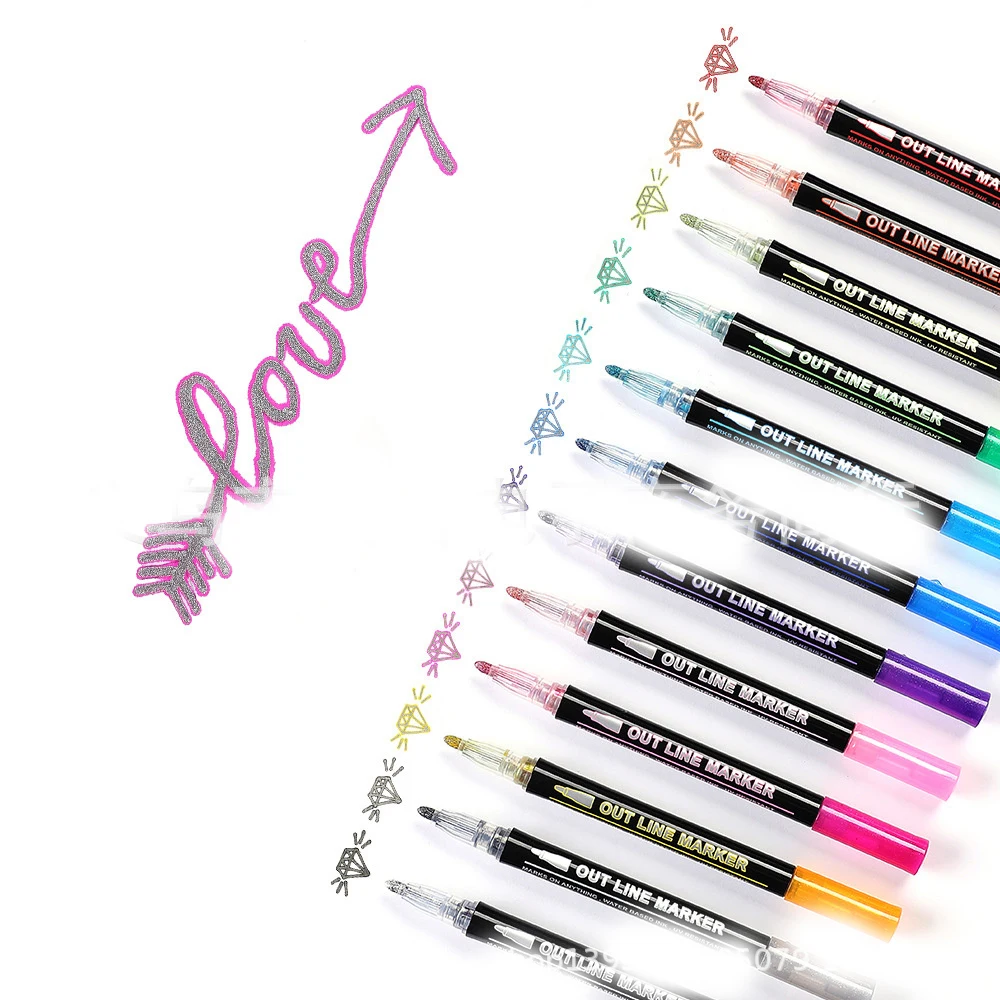 12 шт. контурная ручка на день рождения поздравительная Рождественская подарочная карта авторучка для рисования Diy художественные поделки детский студенческий маркер, фломастер