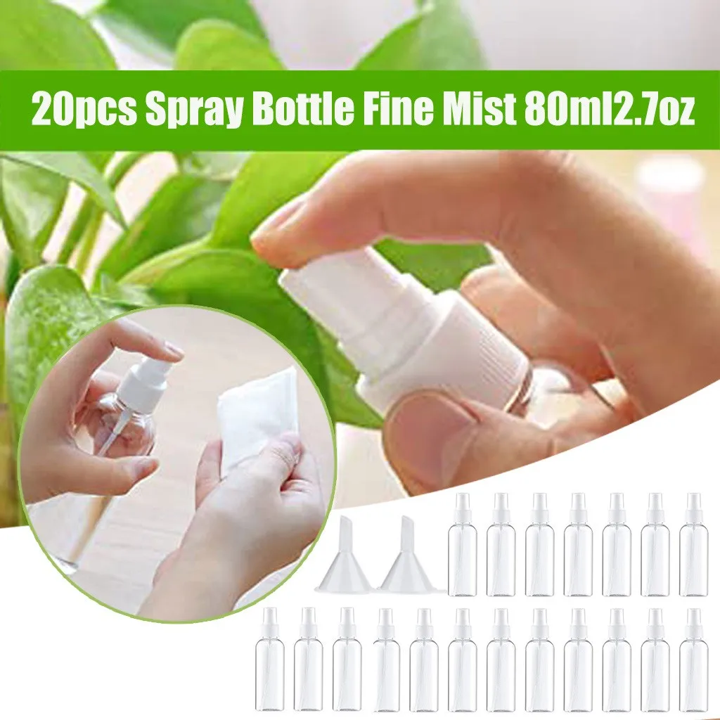 20 шт спрей Бутылка мелкий туман 80ml2.7oz многоразовая пустая бутылка 2 воронки в комплекте