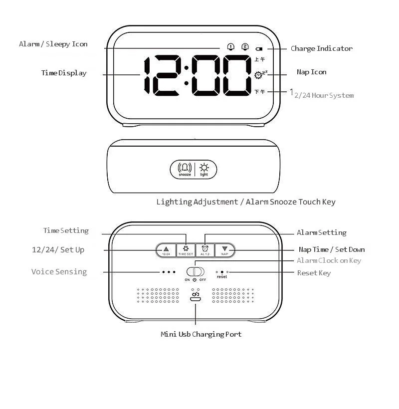 Название продукта: светодиодный зеркальный музыкальный двойной будильник (зарядка)