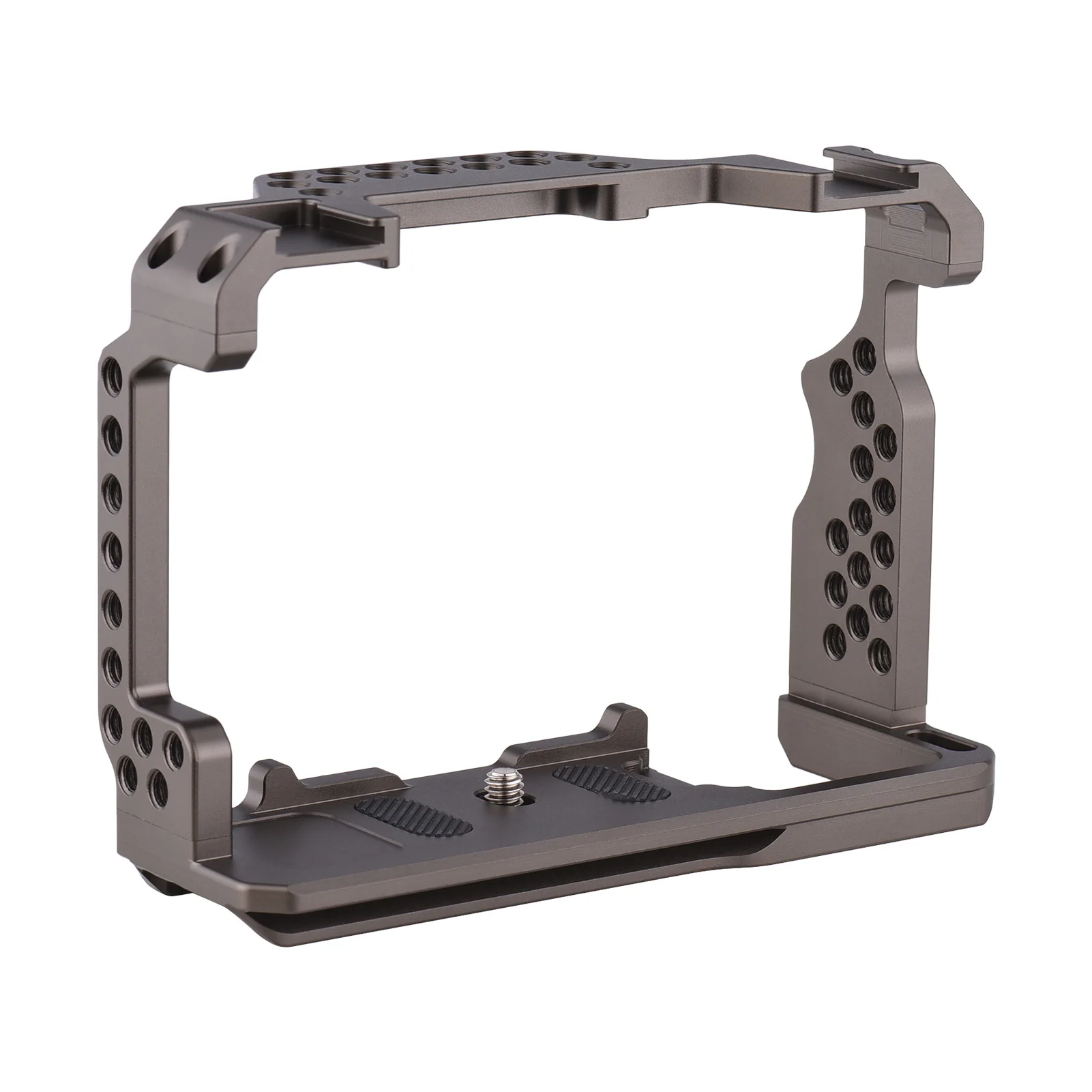 Универсальное крепление: камеру можно зафиксировать с помощью 1/4-дюймового винта в нижней части клетки, с резьбой 1/4 дюйма и 3/8 дюйма для быстрой загрузки штатива.