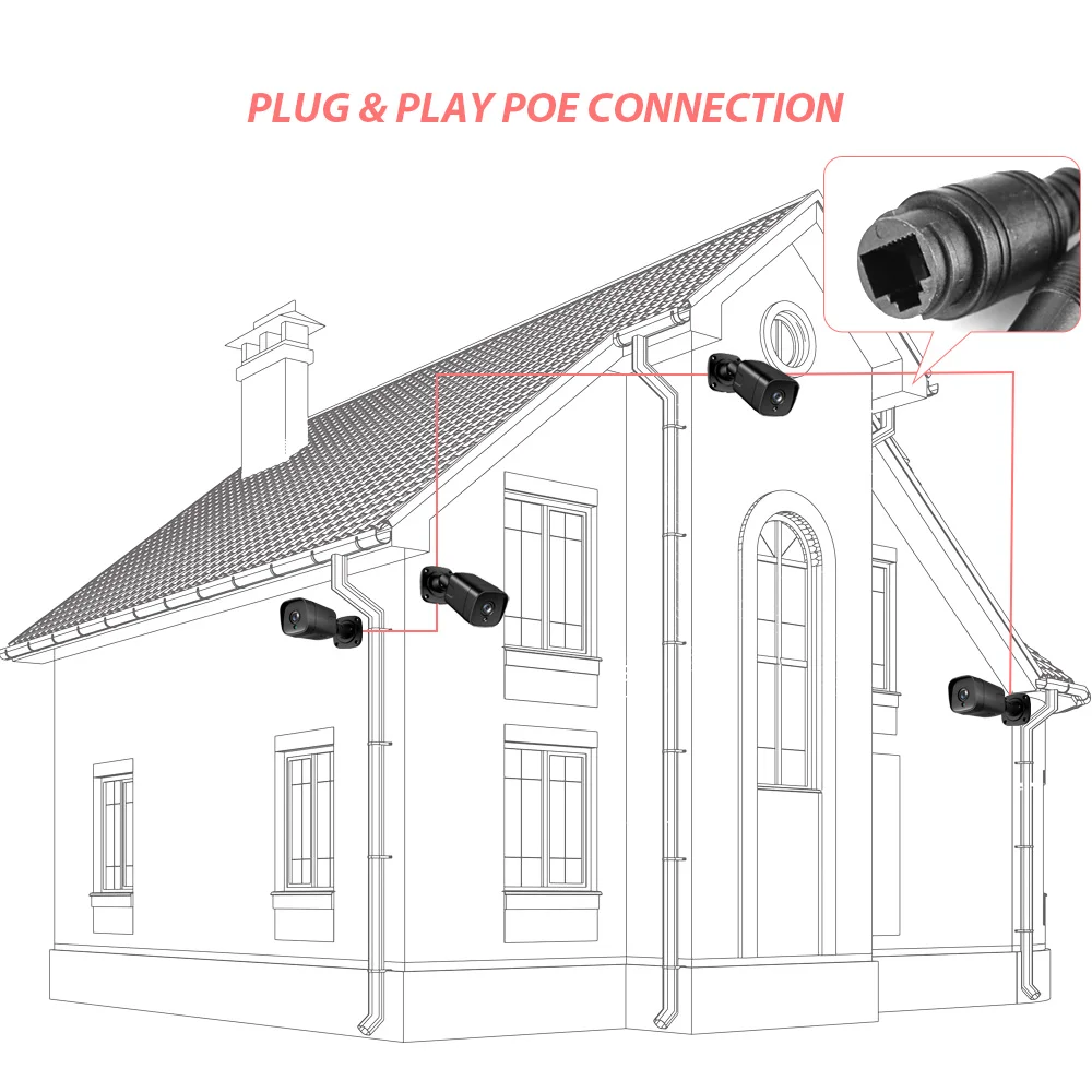 Эта ip-камера PoE должна быть подключена только к сетевому кабелю для достижения цели передачи данных и питания. Соединитесь с нашим Boavision 4K POE NVR для 24/7 записи и мониторинга, установка проста и проста.