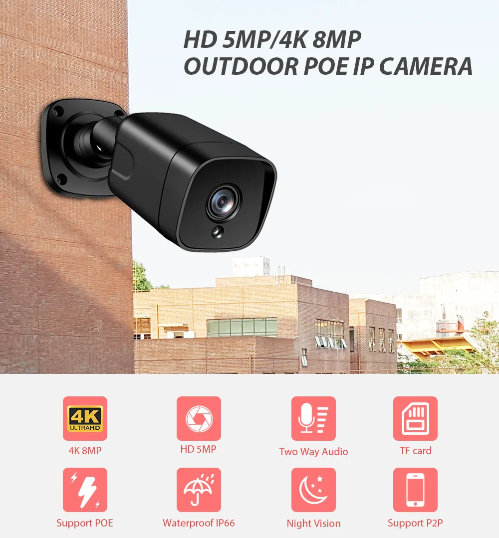 8MP 4K IP камера наружная Водонепроницаемая H.265 цилиндрическая CCTV двухсторонняя аудио TF слот для карты 4MP POE камера видеонаблюдения