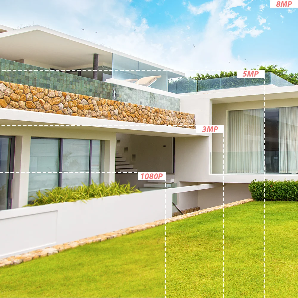 С высоким разрешением 8 мегапикселей (3840x2160), показывают изображения высокого качества, для дневного и ночного видения вы можете получить именно те детали, которые вам нужны, намного четче, чем 1080p и 720p.