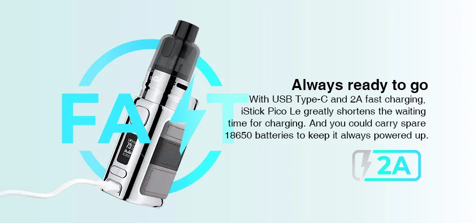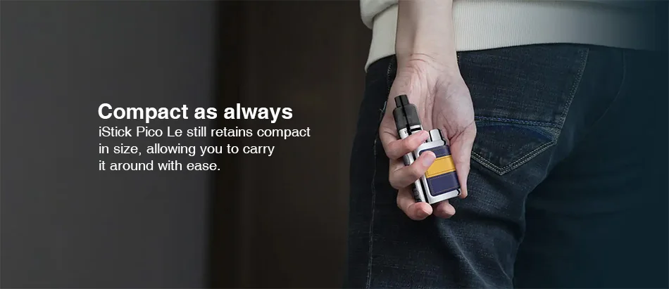 Он также обеспечивает захватывающее путешествие vaping tech своими удивительнымиТехнические характеристики iStick Pico Le Mod. Для того, чтобы дополнять ваш собственный стиль предпочтительного испарения, он имеет основной мощный и преувеличенный аккумулятор, питание от одного аккумулятора 18650 (не входит в комплект) и Макс 75 Вт Выход, это дает вам стабильный и беззаботный опыт vaping. Благодаря 510 соединению, он подходит для всех 510 с резьбой базовых атомайзеров, лучше всего для диаметром 26 мм.