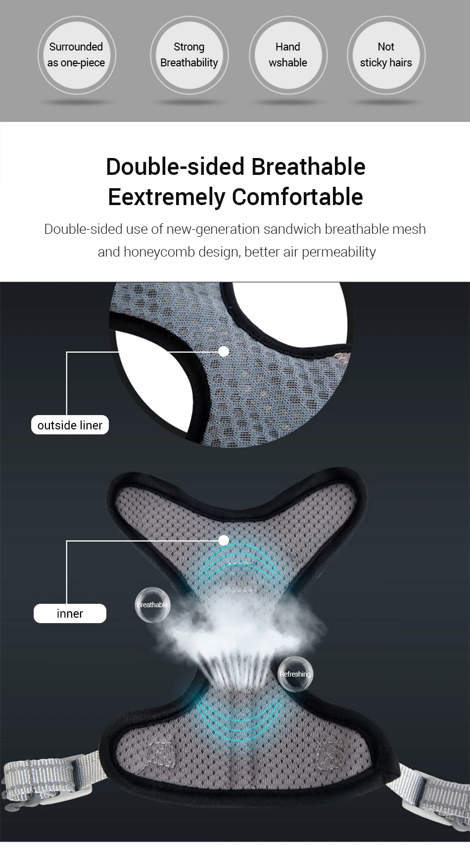 Материал: сотовая сетка, нейлон, мягкая подкладка