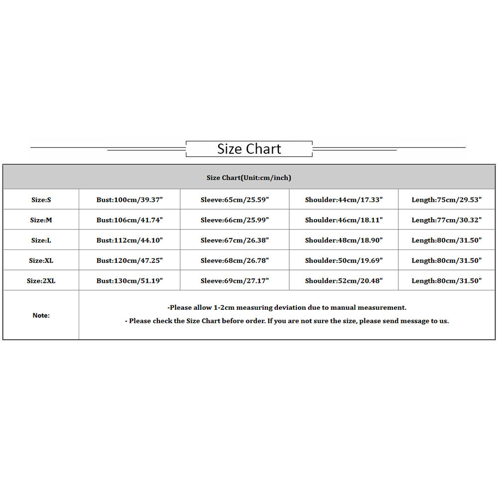 Размеры Таблица (единица измерения: см/дюйм) Размер: S Бюст: 100 см/39,37" Рукав: 65См/25,59" Плечо: 44См/17,33" Длина: 75См/29,53" Размер: M Бюст: 106См/41,74" Рукав: 66См/25,99" Плечо: 46См/18,11" Длина: 77См/30,32" Размер: L Бюст: 112См/44,10" Рукав: 67См/26,38" Плечо: 48См/18,90" Длина: 80См/31,50" Размер: XL Бюст: 120См/47,25" Рукав: 68См/26,78" Плечо: 50См/19,69" Длина: 80См/31,50" Размер: 2XL Бюст: 130См/51,19" Рукав: 69См/27,17" Плечо: 52См/20,48" Длина: 80См/31,50" Примечание: