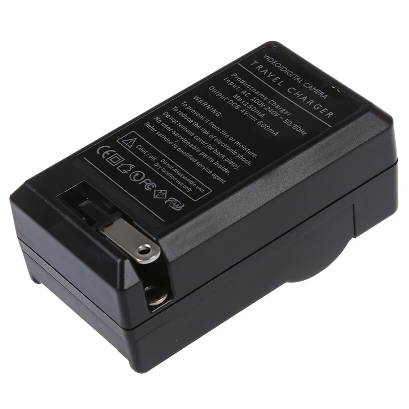 Зарядное устройство разработано с помощью складной вилки a/C, которая заряжает батарею камеры/видеокамеры в мире.