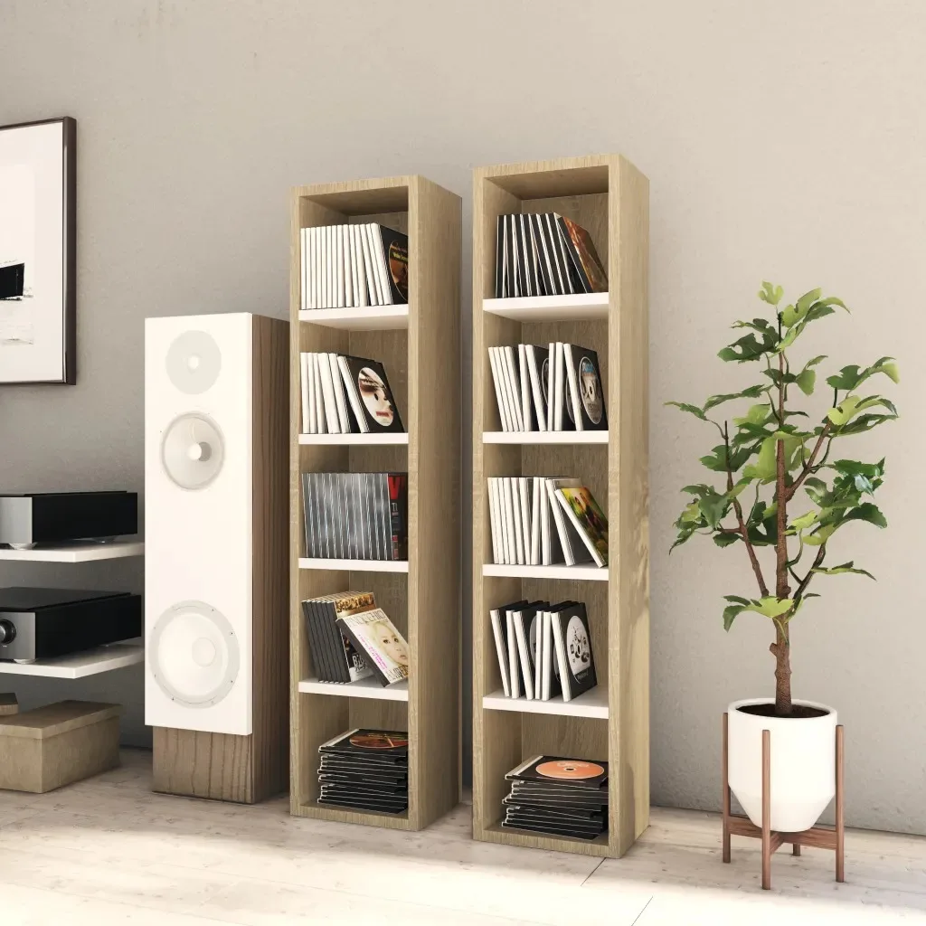 Изготовлен из первоклассной ДСП, CD полки построены до конца.Каждый стильный шкаф для CD может вмещать до 80 компакт-дисков с 5 просторных отделения.Средний размер также подходит для DVD и Blu-Ray.Благодаря своей тонкой форме, он идеально адаптируется к маленьким углам и компактным помещениям.Кроме того, современный и простой дизайн соответствует практически любому стилю интерьера.