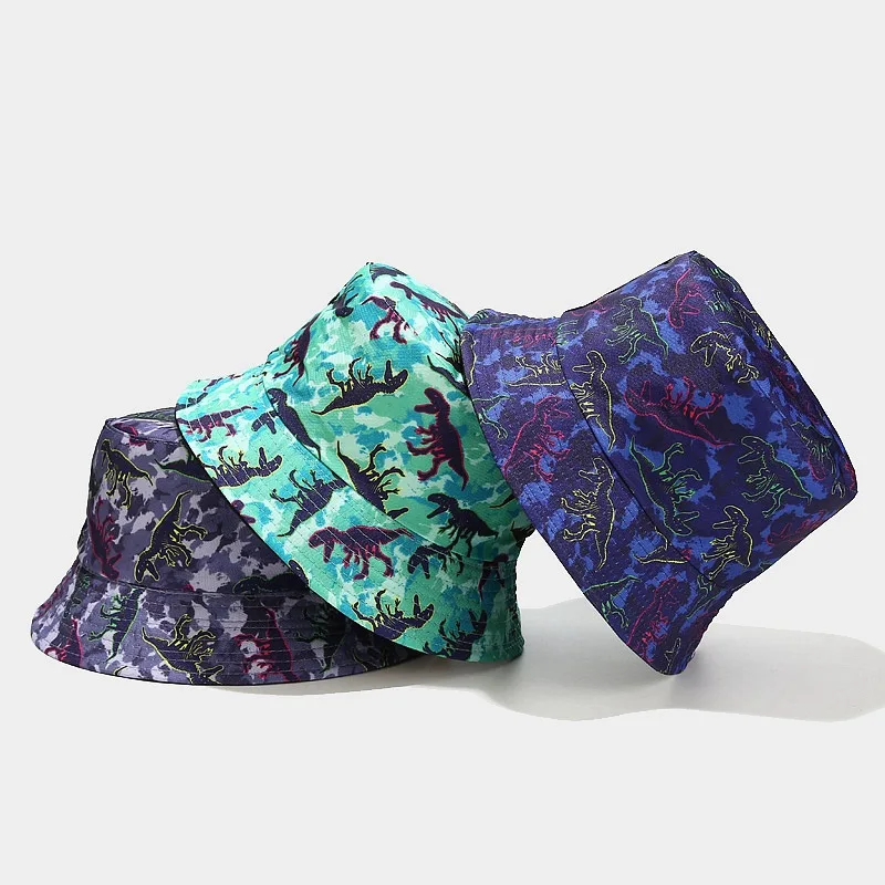 Новинка, двусторонняя шляпа с рисунком динозавра, в рыбацком стиле, мужская и женская уличная Кепка для отдыха, Солнцезащитная шляпа, кепки в стиле хип-хоп