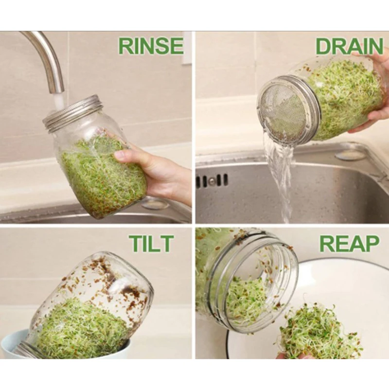 Прорастание: семена ростка, такие как ростки люцерны, ростки бобов манга, капусты, ростки Редьки, ростки брокколи, ростки чечевицы и т. Д.;