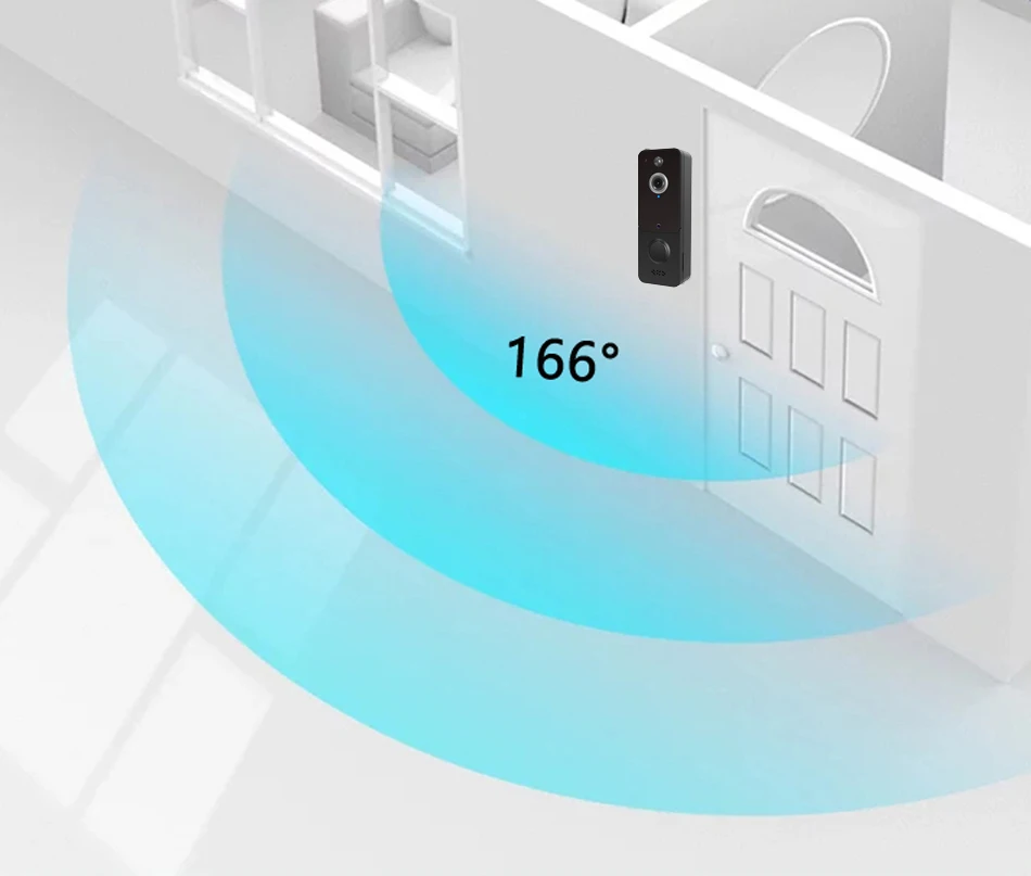 Установлен с широкоугольным льном на 166 градусов, обеспечивает четкое и широкое поле зрения за дверью.