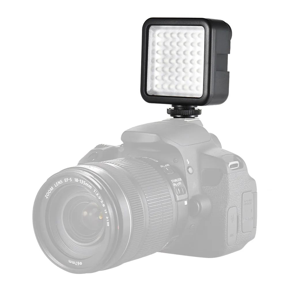 Мини светодиодный светильник Andoer W49 выдает максимум. 5,5 W мягкий белый светильник для профессиональной фотографии, например, для свадьбы, портретного изображения продукта и т. д. Светильник имеет 3 основания для горячего башмака для блокировки нескольких светильник s вместе для лучшего эффекта светильник ing. 0 - 100% Яркость затемнения.