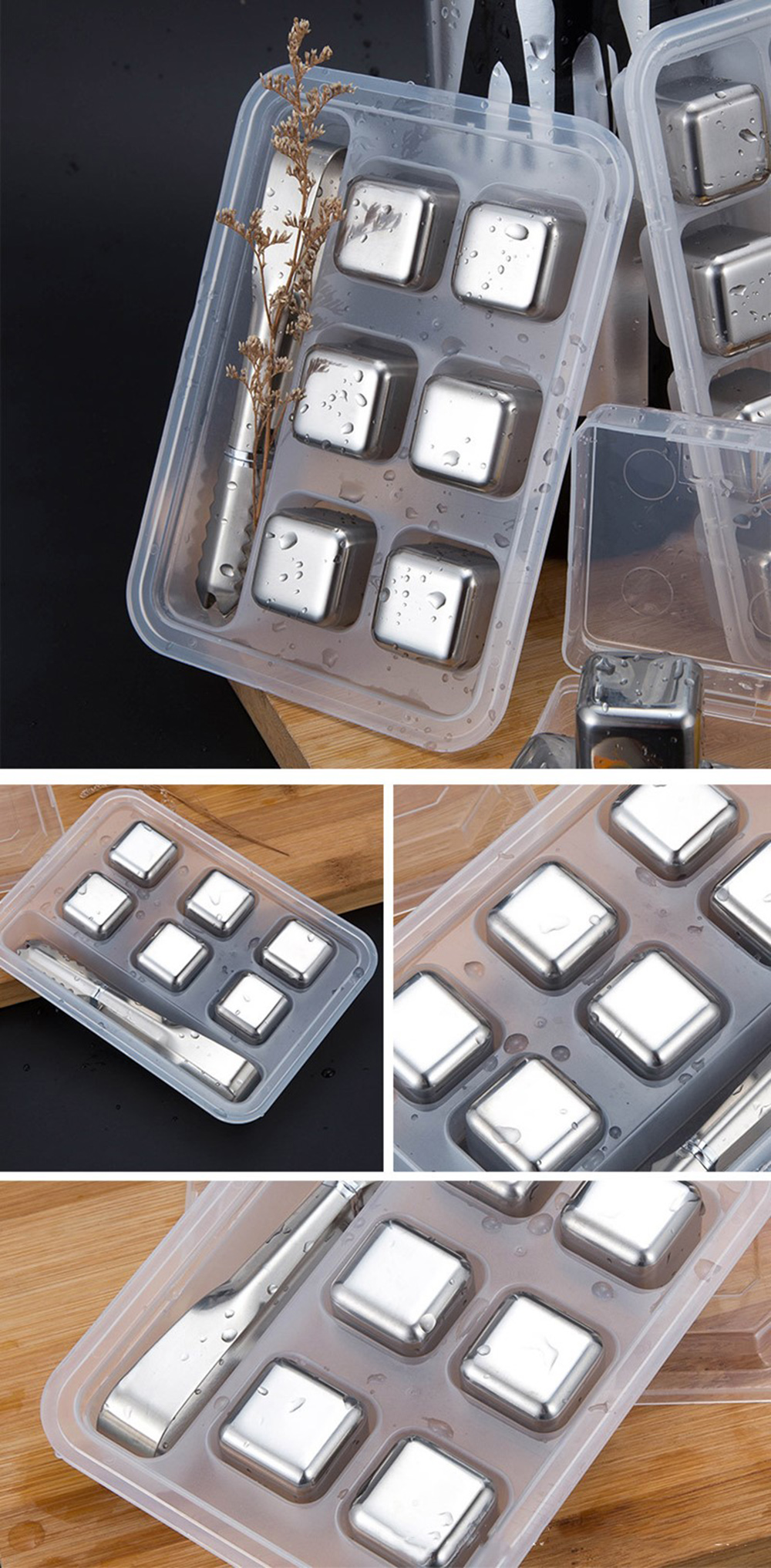 ◆Эасы Чистка и хранение-4/6/8 Нержавеющая сталь многоразового использования с жидким наполнителем кубики льда охлаждающие камни с щипцы (8 шт. в комплекте) в комплекте. Пластиковый поднос для хранения, чтобы сохранить ваши камни для виски чистыми и организовать их во время замерзания, просто мыть водой после использования, очень удобно;