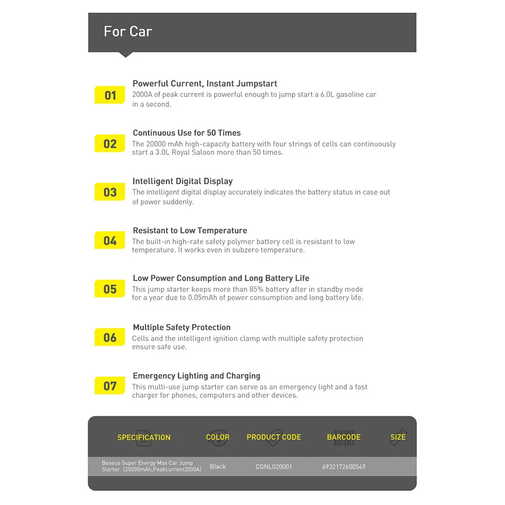 1. Подходят для 90% моделей автомобилей: подходит для до 8L 12V транспортных средств с бензиновым двигателем и до 4L 12V дизельных транспортных средств.