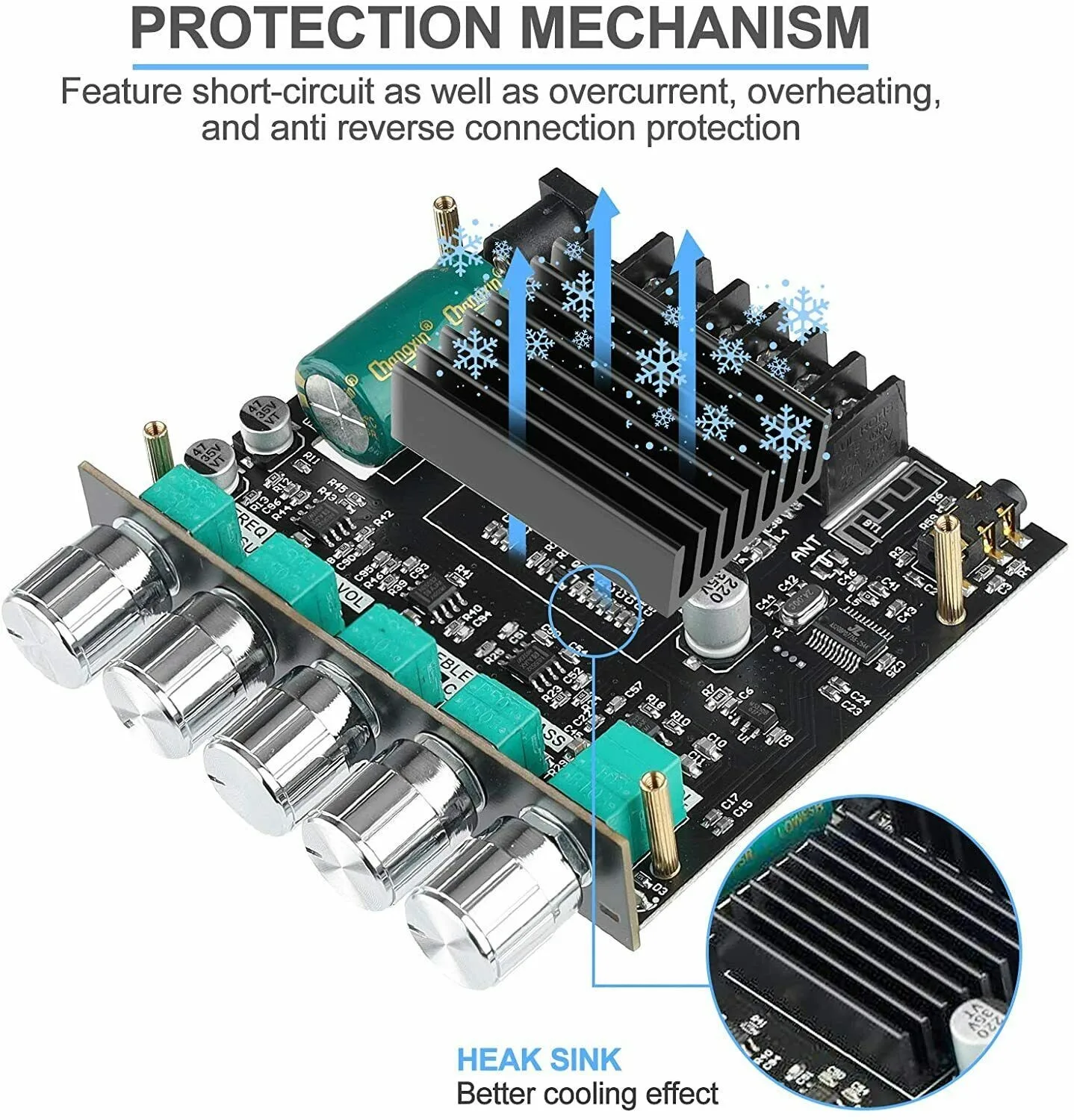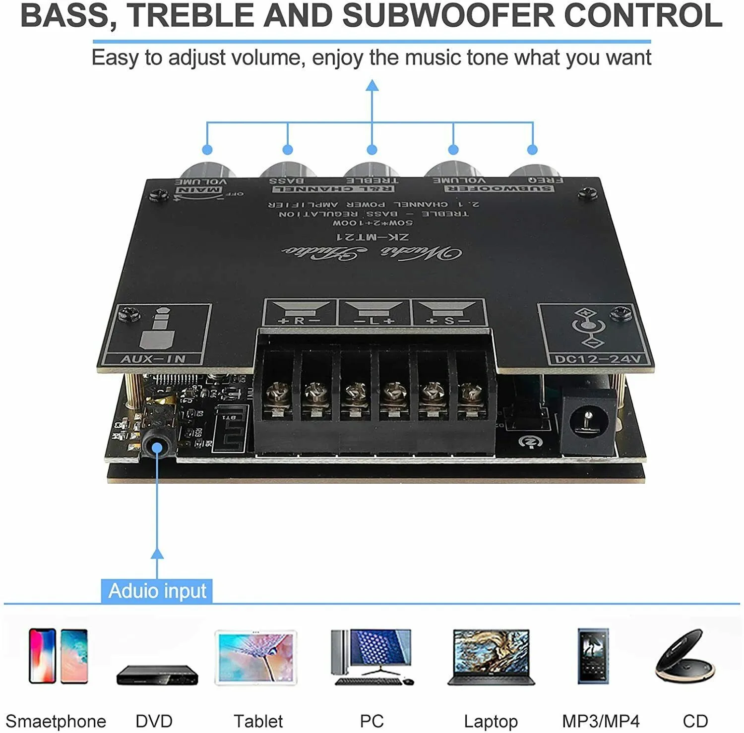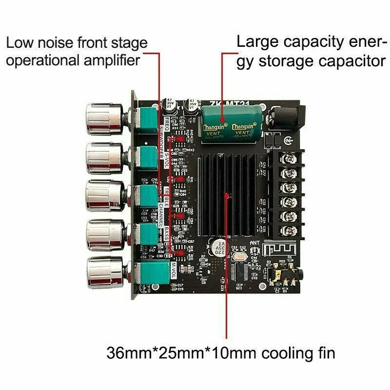 Этот 2,1 канал усилитель мощности легко меняется, вы можете установить и использовать его удобно.