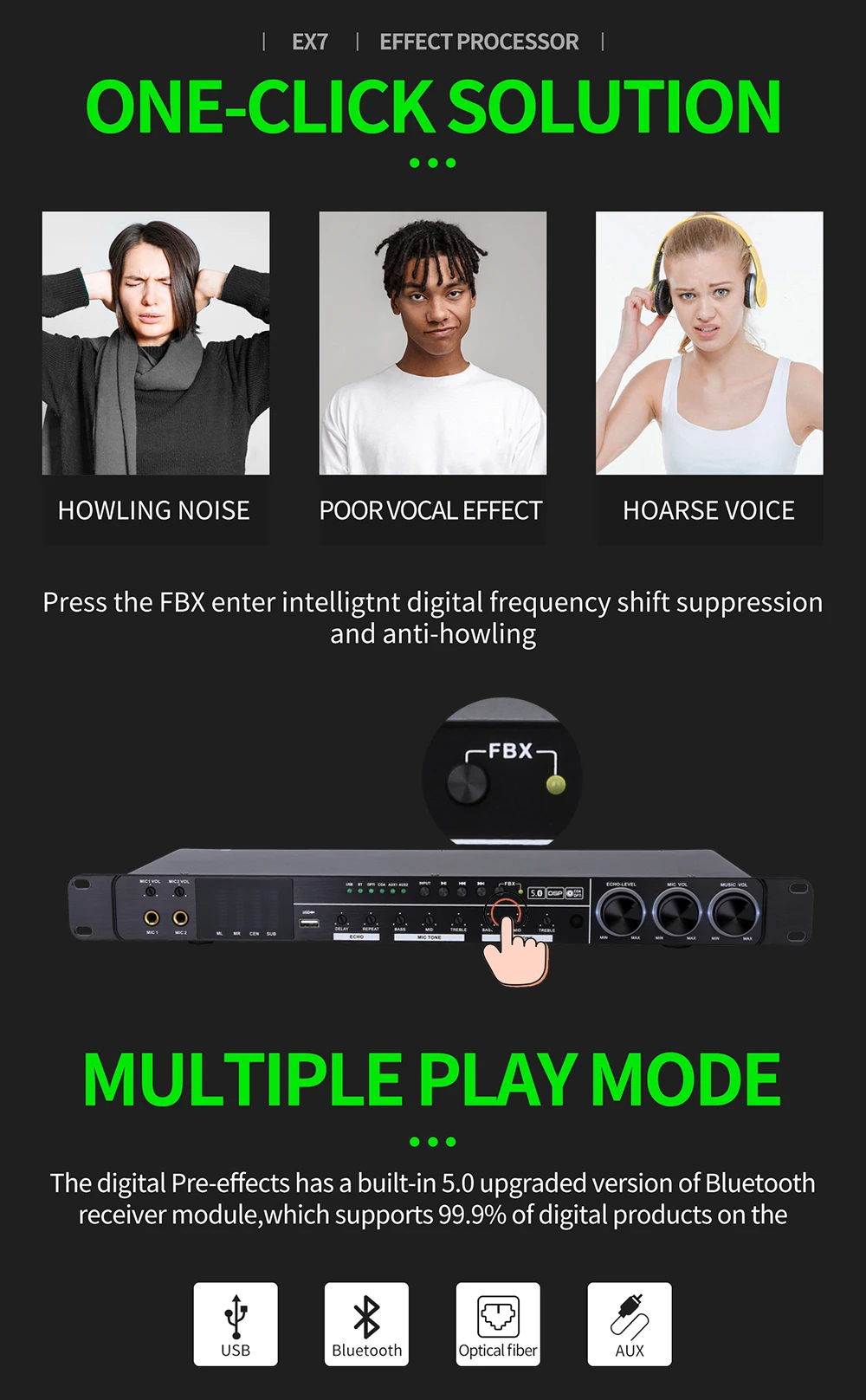 1. Одним нажатием кнопки-нажмите FBX введите itelligient цифровое подавление изменения частоты и анти-завывание