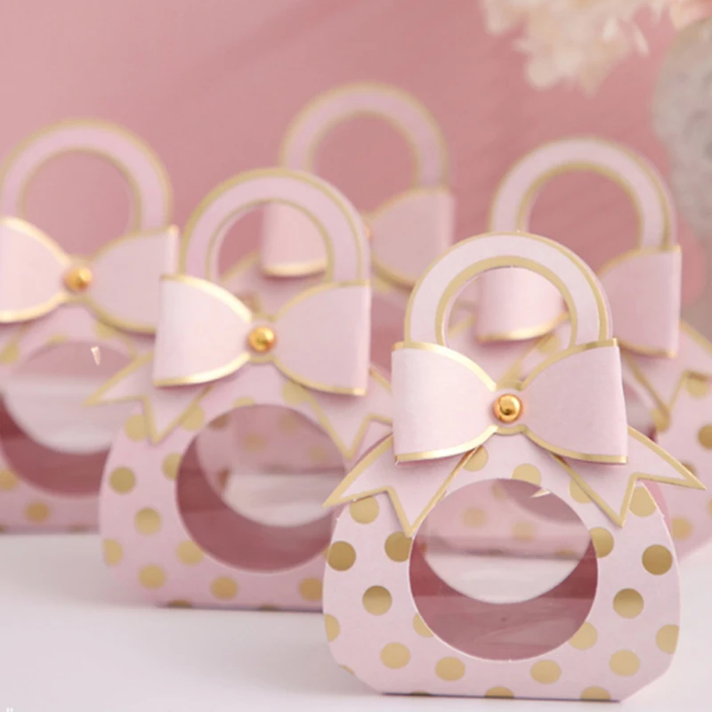 5 шт. Милая подарочная коробка в горошек с окном для детского душа на день рождения, конфетная коробка для драги, упаковка для сладкого шоколада, свадебные подарочные сумки