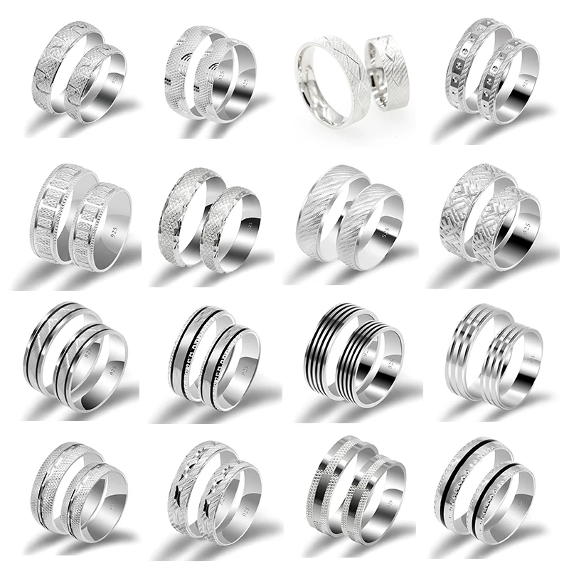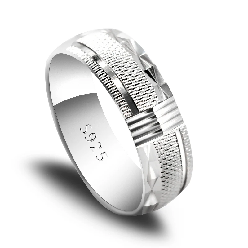 2 шт. Пара Кольца 925 стерлингового серебра полоса простой дизайн, Классические обручальное кольцо для мужские и женские тапочки для влюбленных, хорошее ювелирное изделие