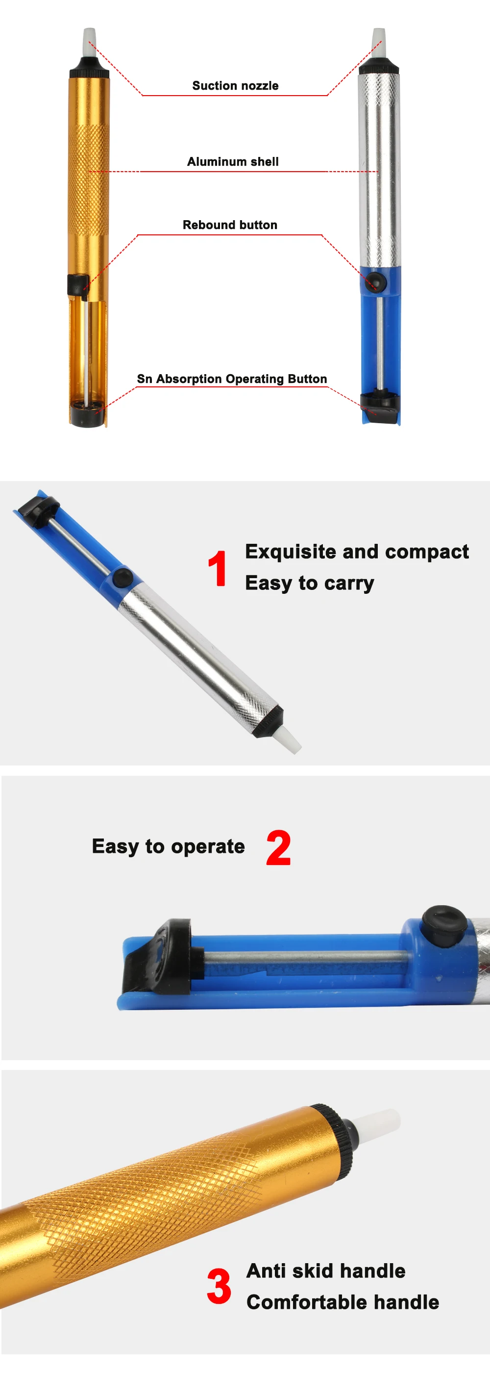 1. Для обеспечения хорошей припоя присоска поршневого уплотнения. Перед электричеством, с пальцами, чтобы подключить отверстие припоя присоска, припой присоска, чтобы нажать кнопку, если поршень не легко поп на место, что уплотнение хорошее.
