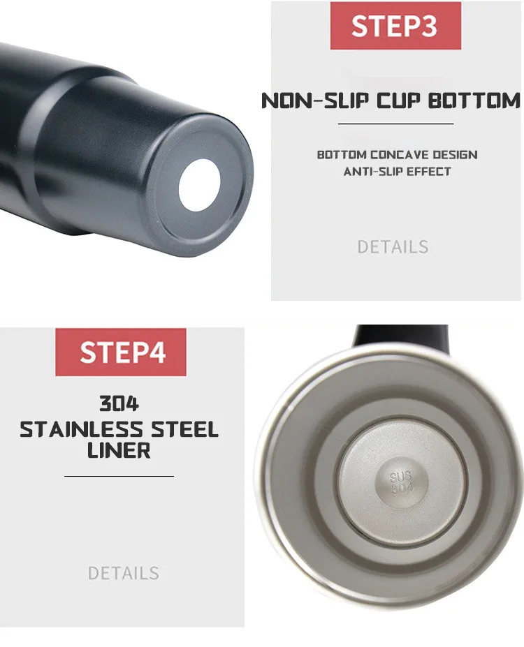 2. Двухслойная пустотелая нержавеющая сталь, эффективно блокирует температурную проводимость с внешним миром, чтобы вы надежно зафиксировали температуру в чашке, не жарко