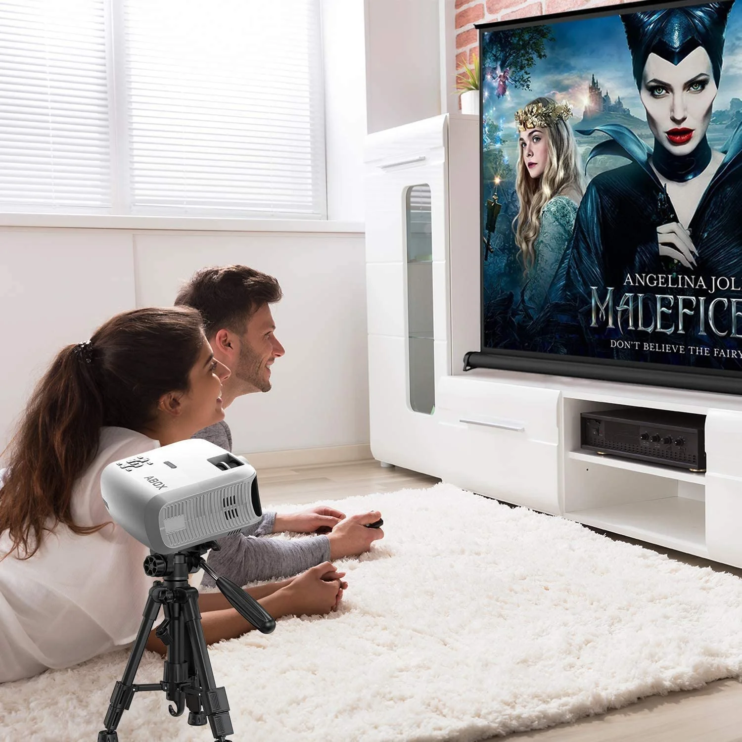 Наслаждайтесь фильмами на свежем воздухе с лета до осени и зимой! Идеально подходит для летних фильмов у бассейна, семейных пляжных поездок, кемпинга, барбекю встреч с его портативным размером. Проектор S5 имеет разрешение 1280*720p, что в 4 раза выше, чем у других.