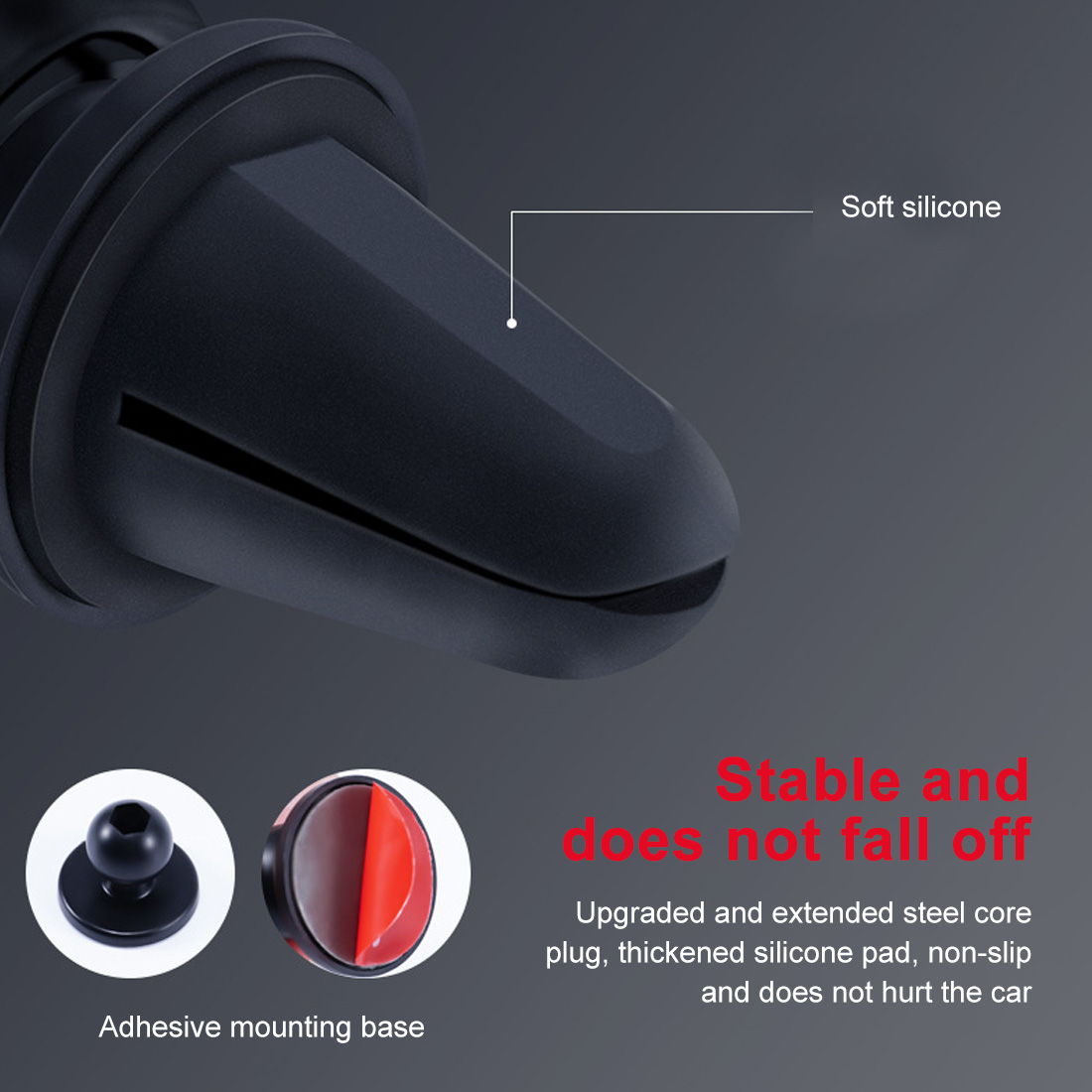 5. Он устойчив и не отпадает, Модернизированный и расширенный стальной сердечник, утолщенный силиконовый коврик, не скользит, не повреждает автомобиль и прочно прилипает