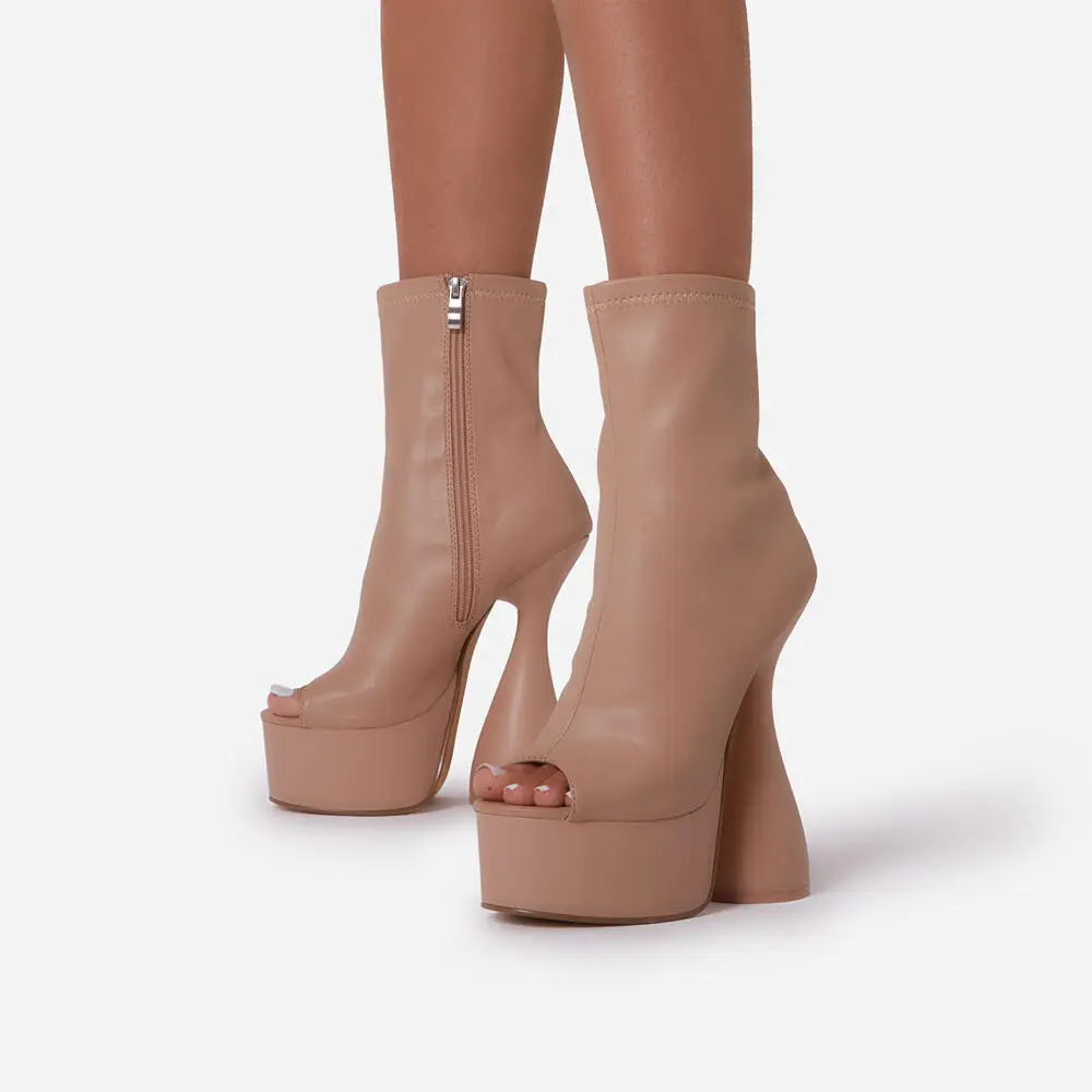 Perixir/дизайн; Женские ботильоны с открытым носком; Странный стиль каблука; Весенняя обувь на платформе; Модная Женская Осенняя обувь на молнии сбоку